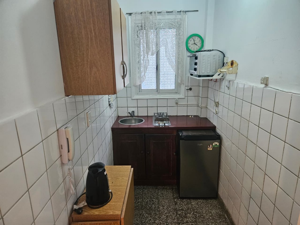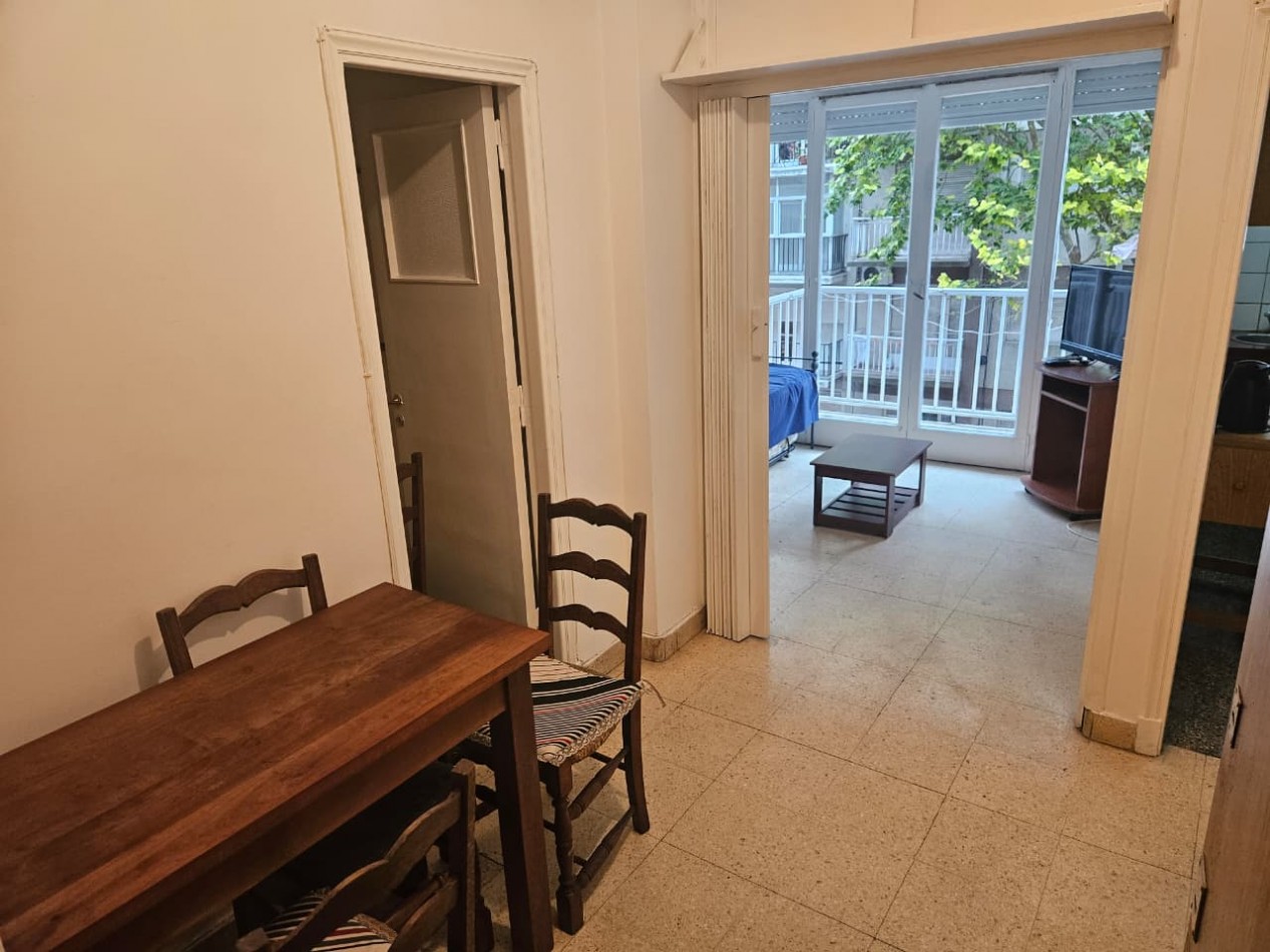 Fiego Propiedades ofrece en alquiler por 24 meses departamento de un ambiente ubicado en Las Heras casi Brown. La unidad dispone de un ambiente dividido con balcon saliente a la calle y vista parcial al mar, baño completo y cocina separada.